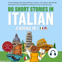 With 80 Short Stories in Italian – 4 Books in 1, you’ll embark on a bilingual, story-based journey that will take you from beginner to advanced in just 15 minutes a day.