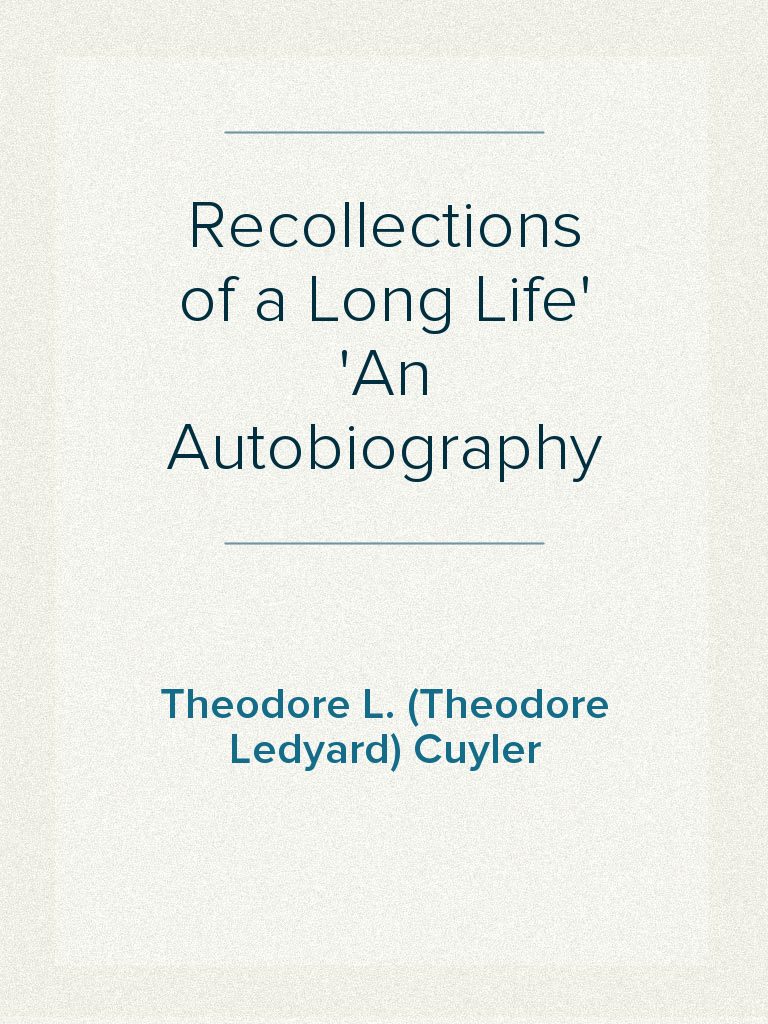 Recollections of a Long Life An Autobiography will be available on