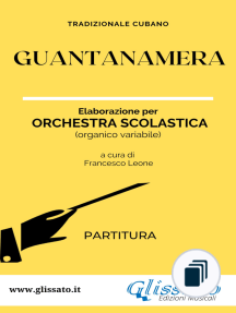 "Guantanamera" è una canzone popolare cubana di grande fama internazionale, le cui origini risalgono al XIX secolo. La serenata dedicata a tempo di bolero ad una guajira guantanamera ("contadina della città di Guantánamo") ha come sfondo le lotte di indipendenza che infiammavano Cuba, in quel periodo dapprima colonia spagnola e poi colonia statunitense, tra la fine del XIX e l'inizio del XX secolo. Il suo carattere romantico, unito ai valori patriottici che esprime, ne fanno una delle canzoni più amate dai cubani. Elaborazione per Orchestra scolastica (Smim) ad organico variabile (volume partitura): PARTE A: Flauto, Clarinetto (opt.8), Sax Alto (8) PARTE B: Flauto(opt.8), Clarinetto, Sax Alto (opt.8) PARTE C: Violino/Tastiere PARTE D: Violino/Tastiere. CHITARRA 1. - CHITARRA 2, Violoncello (C.B.) PIANOFORTE A - B. PERCUSSIONI: Claves, Conga,Rullante e G.cassa/Timpano.